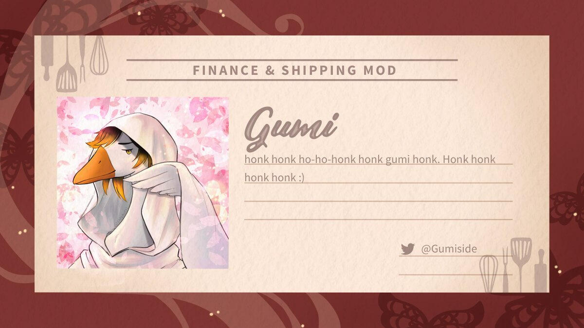 | My Position: Head Organization, Finance, and Shipping Mod |